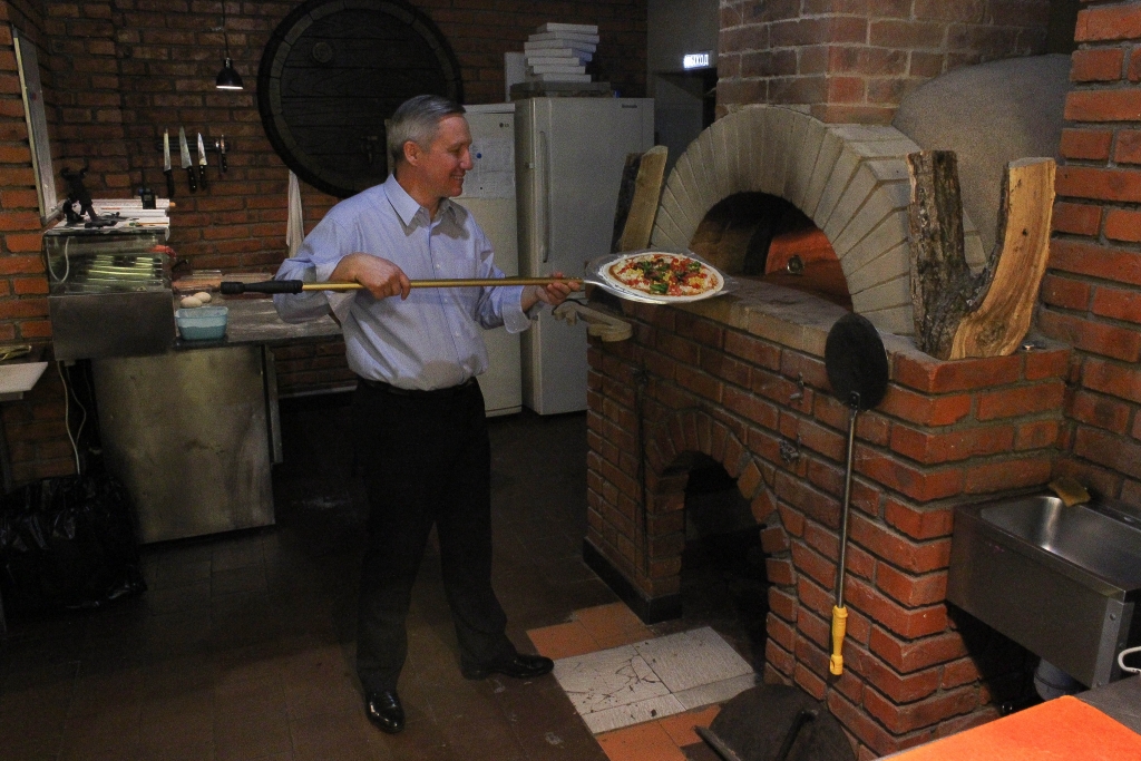 Погружаем пиццу в духовку или в печь. Фото: Александра Мельник, корр. ИА AmurMedia