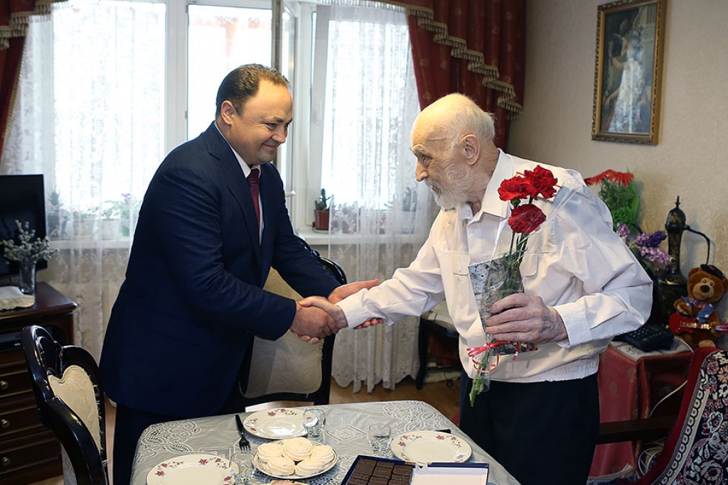 Так, сегодня, 4 мая, Игорь Пушкарёв побывал в гостях у участника Великой Отечественной войны Владимира Коновалова. Мэр поздравил фронтовика с 71-ой годовщиной Победы, пожелал крепкого здоровья и долгих лет жизни, а также вручил подарок.