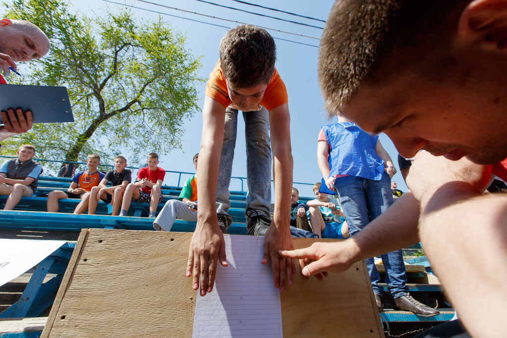 Во время спортивного праздника на открытии спортивного центра школьники выполняли 7 основных упражнений: подтягивание на перекладине, бег на 60 метров, наклон вниз с прямыми ногами, отжимания, прыжки в длину, подъем гири, а также упражнение на пресс. Так как тестирование было пробным, судьи давали участникам три попытки выполнить упражнение (на настоящем тестировании дается всего одна попытка). Судьи объясняли школьникам, как правильно выполнять те или иные нормативы, чтобы в будущем они получили максимальные очки при выполнении упражнений.