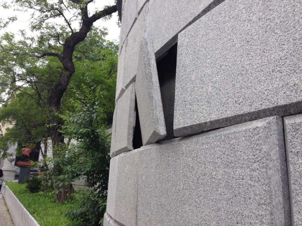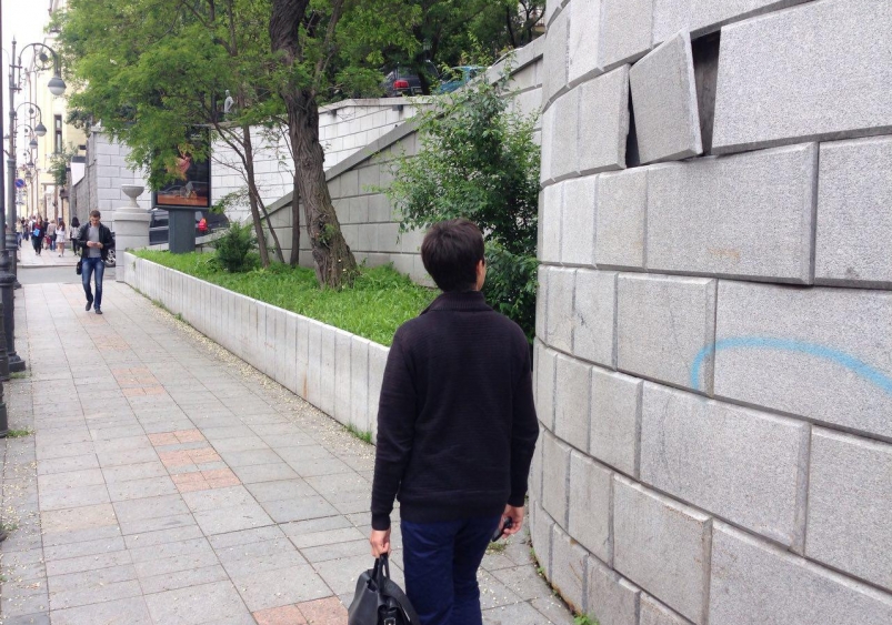 Облицовка крыльца здания "Серая лошадь" по адресу ул. Алеутская, 17 держится буквально на "честном слове", угрожая в любой момент упасть на головы прохожих. Горожане, оглядываясь, обходят опасный участок пешеходной дороги, сообщает РИА PrimaMedia.