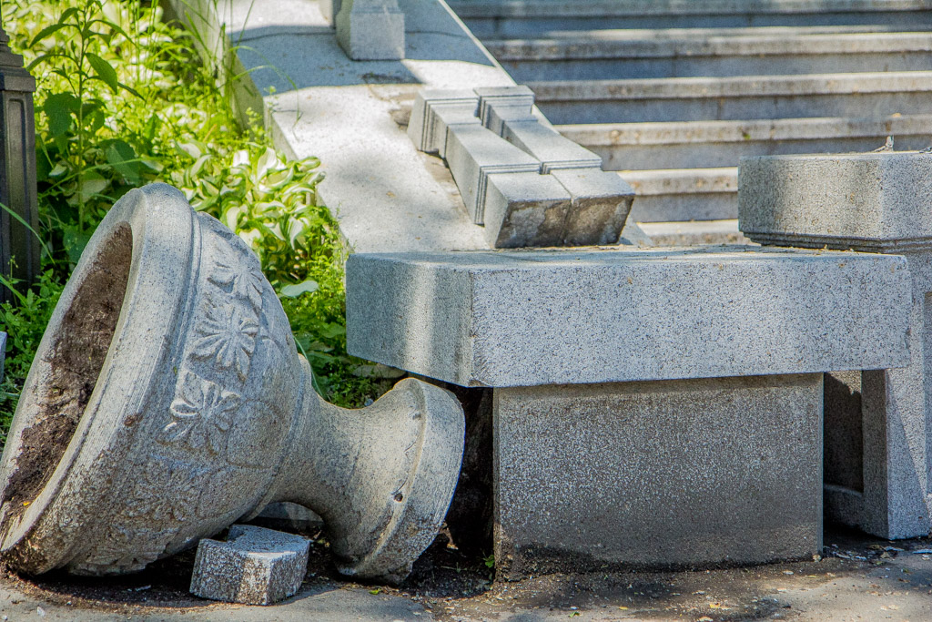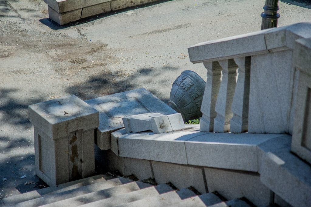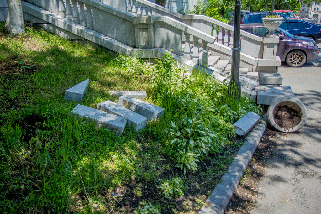 Напомним, что две недели назад здание уже пострадало от неизвестного автомобиля. Как рассказывали очевидцы, водитель на машине сбил вазон и часть лестницы, ведущей к входу в "Серую Лошадь". Однако связано ли это с вываливающейся плиткой, неизвестно.