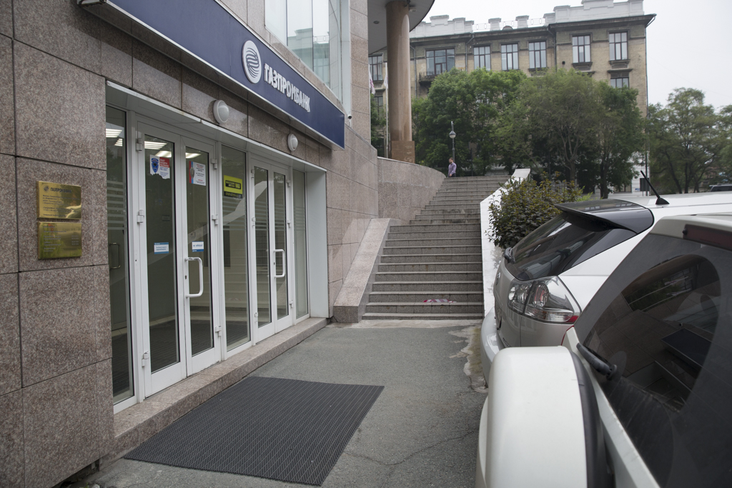 Самым исполнительным кредитным учреждением, как и положено государственной компании, стал "Сбербанк". Все офисы, найденные во Владивостоке, оснащены удобными пандусами. Кое-где есть даже кнопка для маломобильных граждан, с помощью которой можно вызвать помощь.