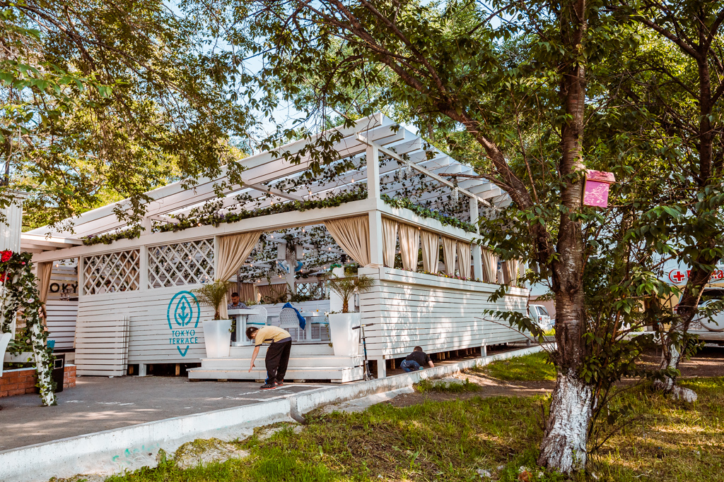 Tokyo на Дальзаводе (ул. Светланская, 121) – новый ресторан с большой террасой, которая спрятана от глаз прохожих "зеленой защитой".