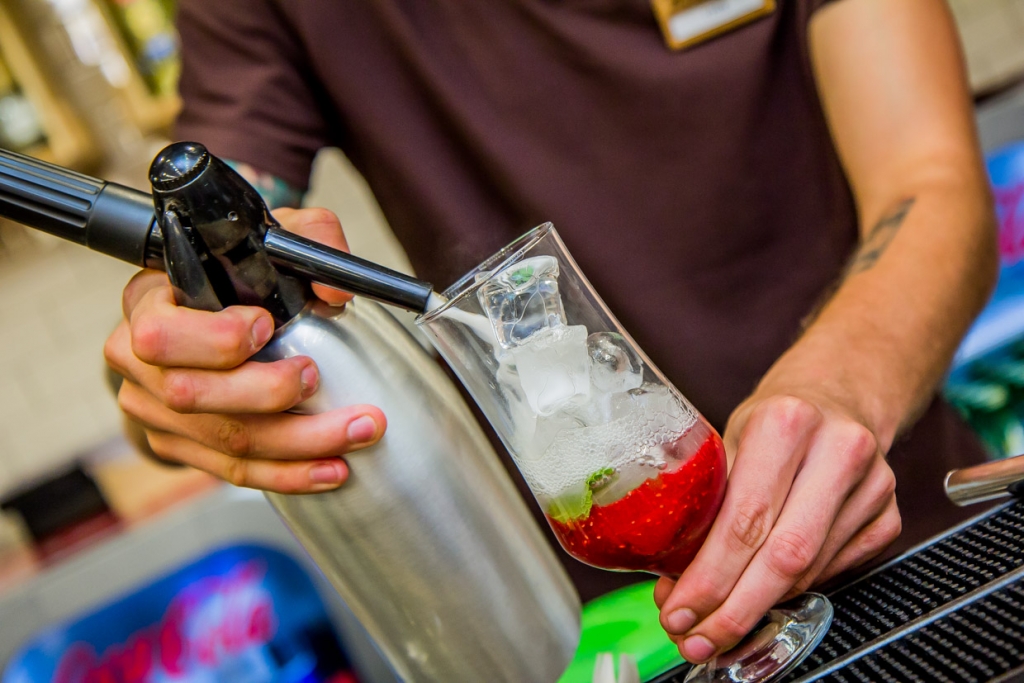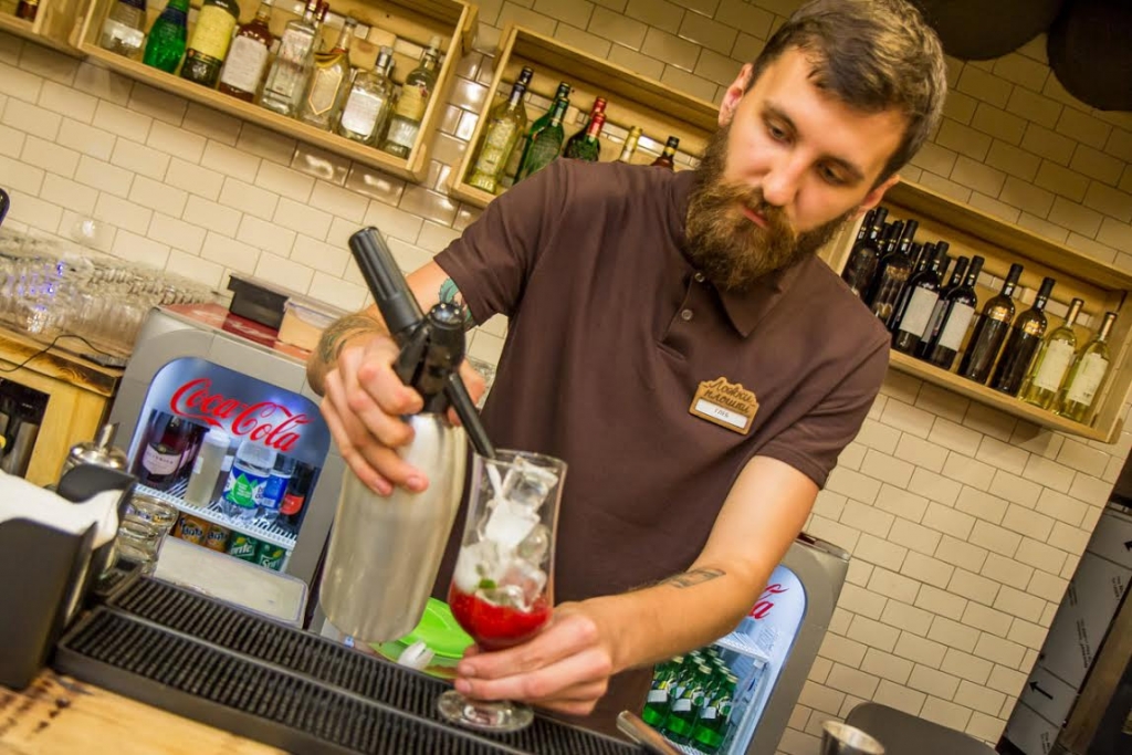 — Классические коктейли мы переделали на новый лад, ингредиенты для них используем натуральные, — объясняет Глеб. – Варенья тоже сами готовим: варим карамель, закидываем туда цельные ягоды клубники или лимон, получается свежо, натурально, вкусно.