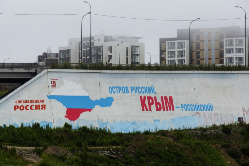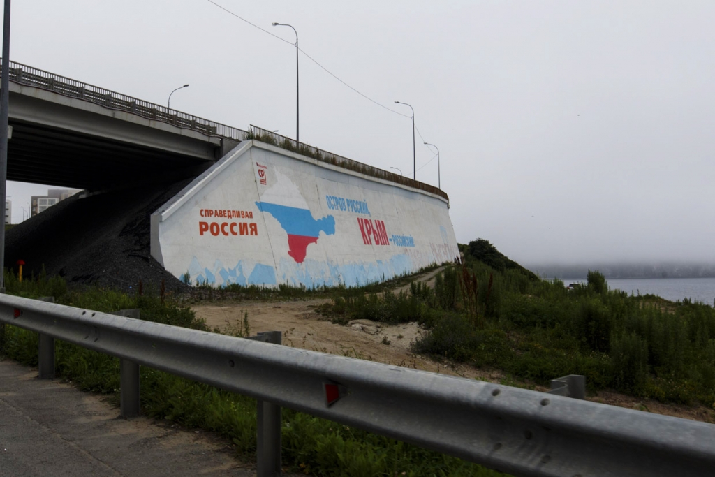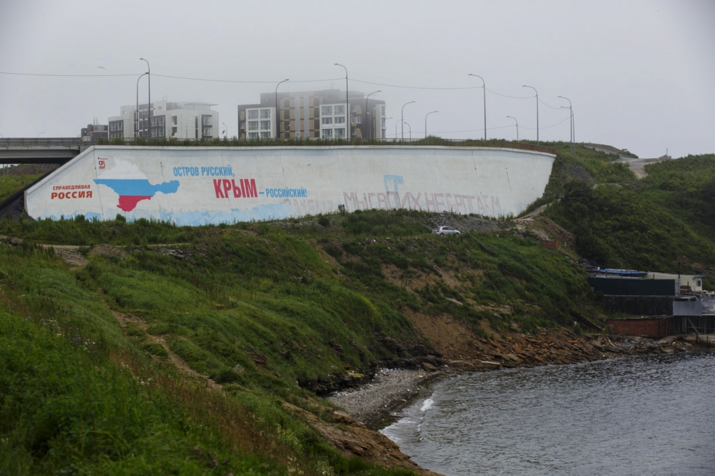 Идею поддержали его однопартийцы и общественность Владивостока. И на стене, расположенной недалеко от моста на остров Русский, появились силуэт Крымского полуострова, раскрашенный в цвета российского триколора, и надпись "Остров Русский, Крым – российский!".