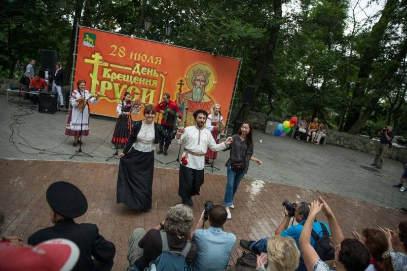 Десятки жителей Владивостока собрались в Адмиральском сквере для празднования православного праздника – Дня Крещения Руси. Горожане вместе с творческими коллективами танцевали на площадке и подпевали артистам, сообщает РИА PrimaMedia.