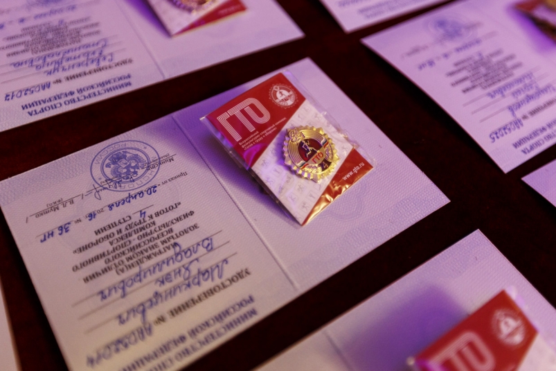 29 учащихся образовательных организаций 13-15 и 16-17 лет (4-ой и 5-ой ступеней) из городских округов и муниципальных районов Приморья стали первыми обладателями золотых знаков отличия Всероссийского физкультурно спортивного комплекса "Готов к труду и обороне". Они успешно выполнили нормативы на краевом фестивале "Вперед ВФСК ГТО".