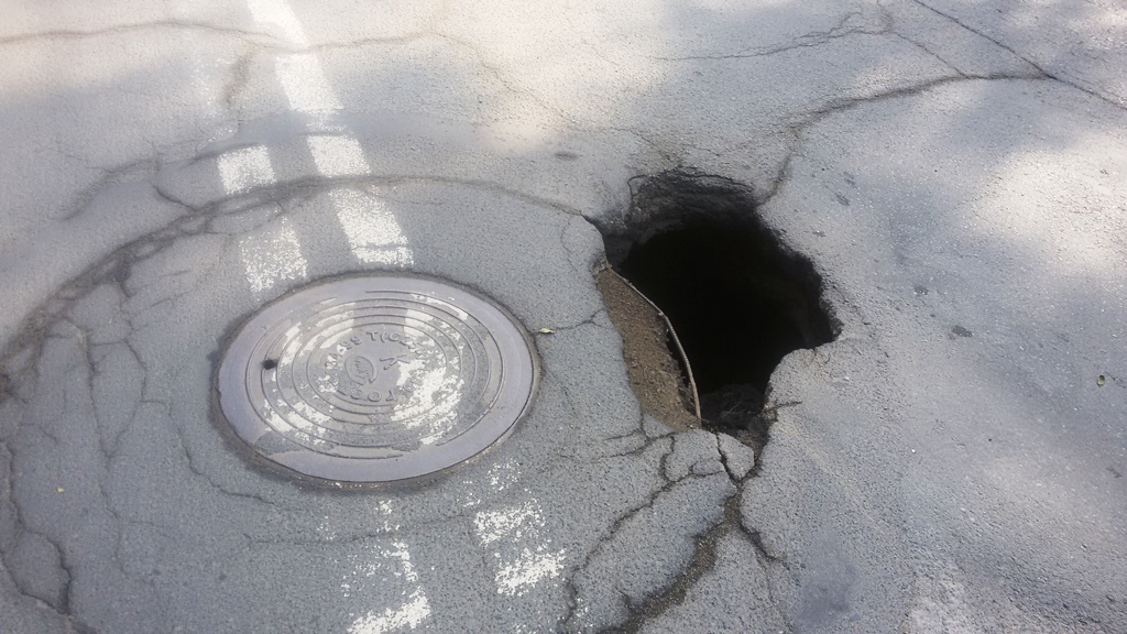 По их словам, яме уже несколько недель, но никто из ответственных служб не предпринимает мер к ее ликвидации, как будто чиновники не бывают в этой части города. Между тем, тут находится довольно большой жилой микрорайон, крупные торговые центры.