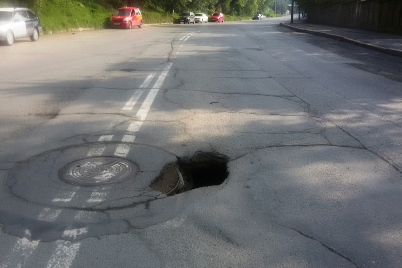 Дорога на Окатовой во Владивостоке неожиданно превратилась в дуршлаг