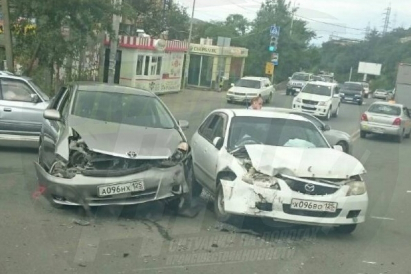 Два автомобиля с одинаковыми номерами столкнулись на улице Нейбута в районе авторынка "Зеленый угол". Как говорят очевидцы, водитель Wish при выезде со второстепенной дороги не уступил Mazda Familia, сообщает РИА PrimaMedia.