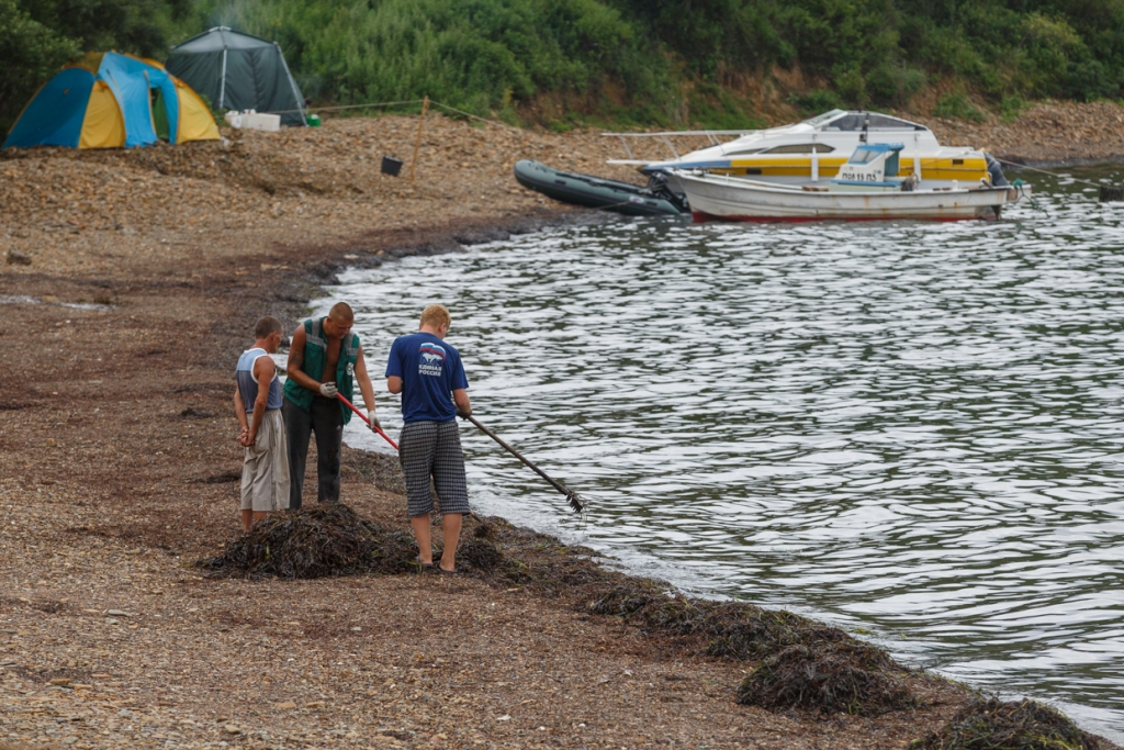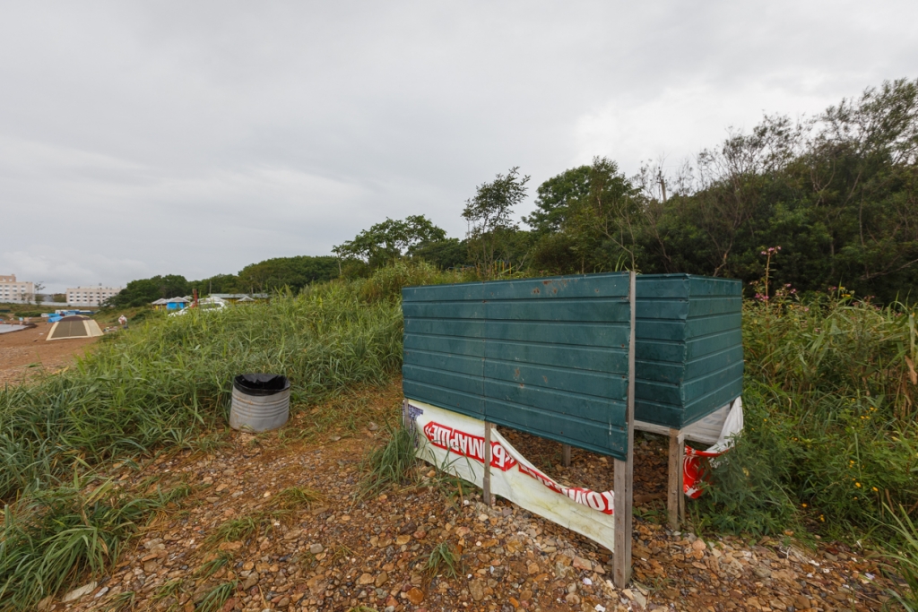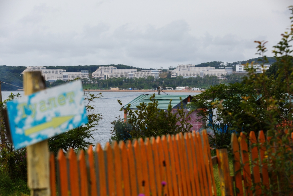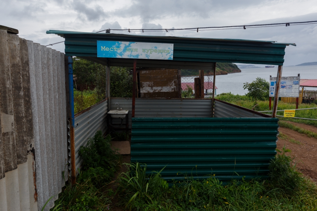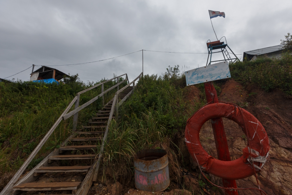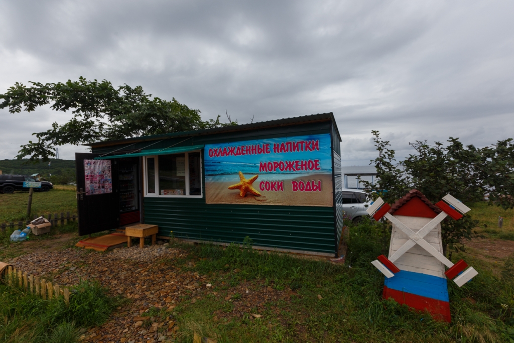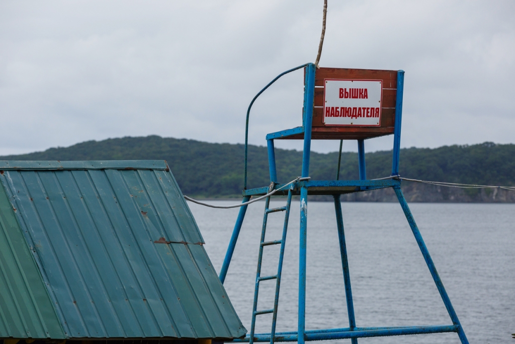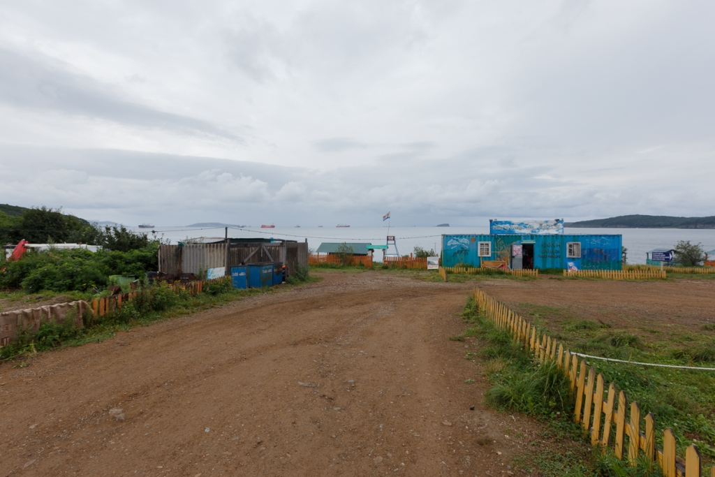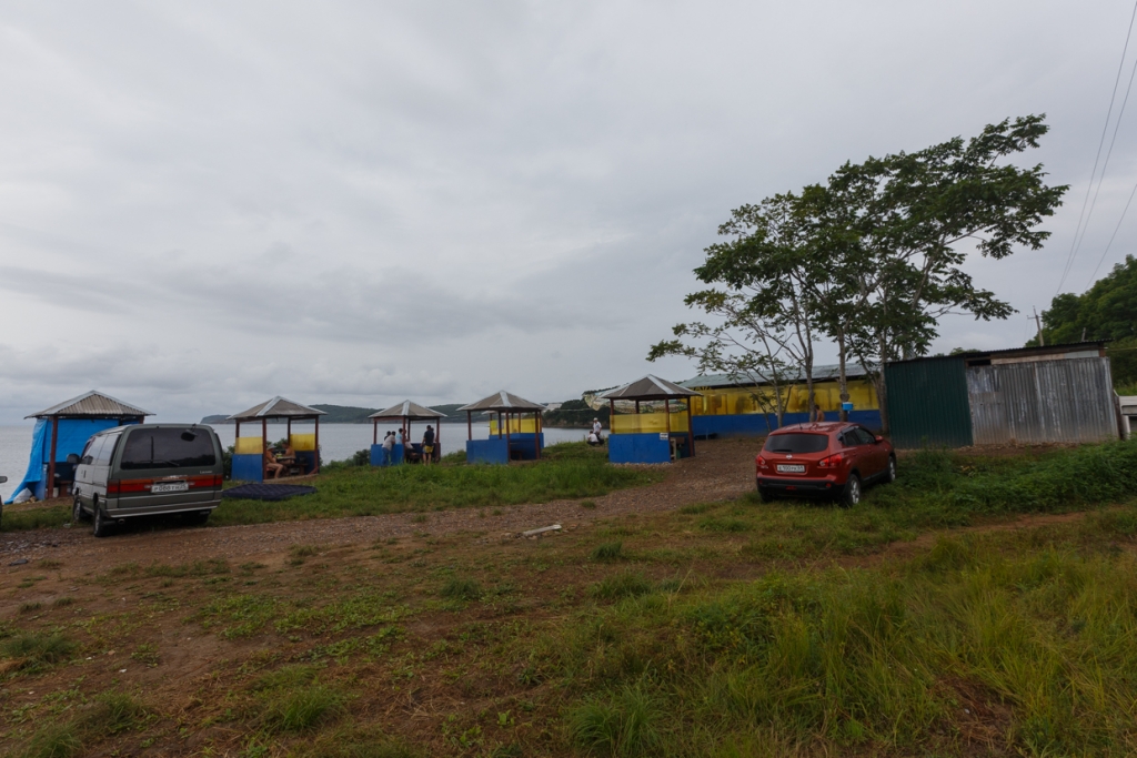 Любители ночевок на берегу моря могут оставить свою палатку до утра за 300 рублей (кроме 100 рублей за въезд). Другие плюсы: специально отведенное место для курящих и вид на Уссурийский залив и кампус ДВФУ. Другие минусы: прямо на берегу, судя по всему, уже давно лежит большая металлическая конструкция. Недалеко от пляжа бухту бороздят крупные суда, которые сбрасывают в воду пустые бочки из-под топлива.