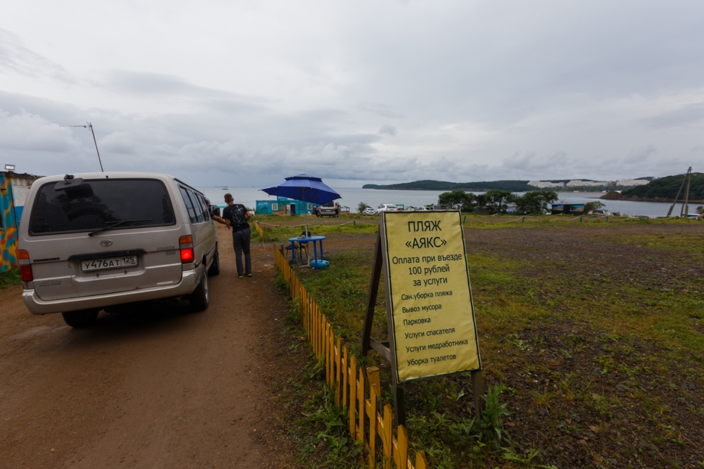 Въезд на территорию пляжа платный — 100 рублей. Горожане платят, не спрашивая никаких документов, подтверждающих законность сборов. За эту сумму вы получаете право припарковать свое транспортное средство поближе к берегу и чистоту — из этих средств оплачивается уборка мусора и водорослей, санитарная уборка пляжа, услуги спасателя и медработника. Автостоянка неасфальтированная.