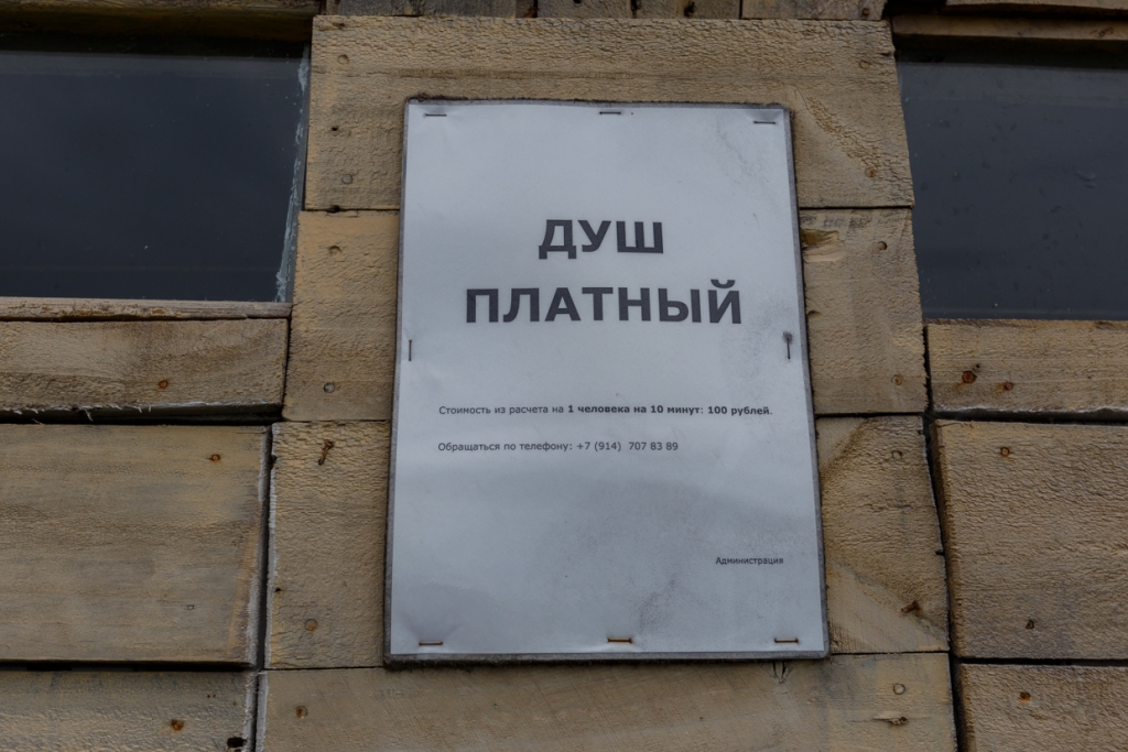 Пожалуй, этот пляж — один из немногих в городе, где есть и туалеты, и душевые, и кабинки для переодевания. Их состояние — уже другой вопрос, но они все же есть. Есть даже душевые кабинки, где 10 минут обойдется вам в 100 рублей.