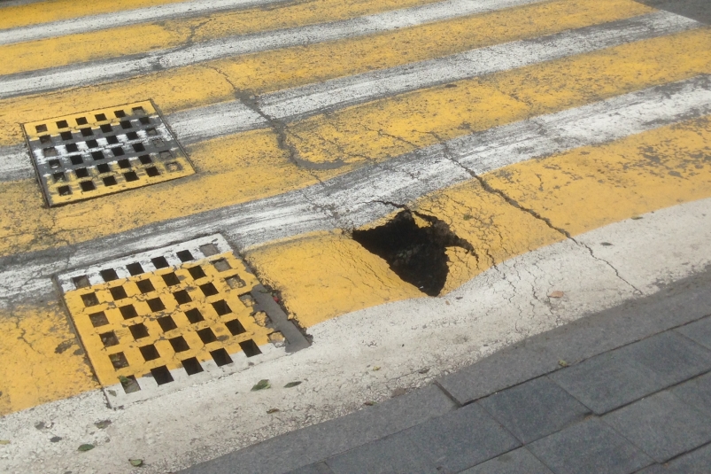 Стоит отметить, что это не единственный провал в городе на пешеходном переходе. Яма, которая образовалась в конце мая посреди проезжей части на кольце Спортивной во Владивостоке, продолжает расширяться. Трещины на дороге в этом месте начали появляться после схода снега, однако с проливными дождями часть асфальтового покрытия разрушилась окончательно, дорожное покрытие продолжает уходить под землю. Так как коммунальные службы до сих пор не определились с зоной ответственности, автомобилистам следует быть внимательными и объезжать этот участок по левой стороне, чтобы не попасть колесом в яму.