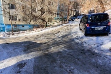 Дворы в спальных районах Владивостока превратились в ледяную ловушку — фото Скользкие подъёмы стали препятствиями для автомобилистов 12:23