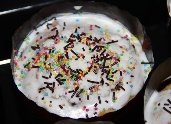 Глазурь готова к использованию. Она должна быть нанесена на остывший кулич. После нанесения глазури, если желаете, можно сразу украсить кулич разнообразными посыпками, пока глазурь не застыла.
