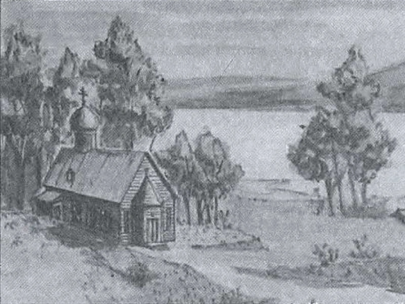 Сначала это была церквушка из бревен, 19 метров в длину и 8,5 метров в ширину. У нее было 8 окон, при входе — небольшая дверь и площадка. Не было даже купола и колокольни, всего один колокол весом в 1 пуд (примерно 16,4 кг). Малый судовой колокол висел рядом с церковью под двускатным навесом. С виду это был обыкновенный бревенчатый дом, и лишь деревянный крест, возвышавшийся над двускатной кровлей, напоминал о назначении здания.