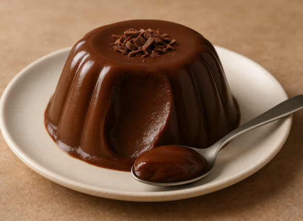 Через 15–20 минут пудинг слегка остынет и станет густым и бархатным. А если убрать его в холодильник на пару часов, получите нежный десерт, который по вкусу не уступает ресторанному. Подавайте с тёртым шоколадом, ягодами или взбитыми сливками.