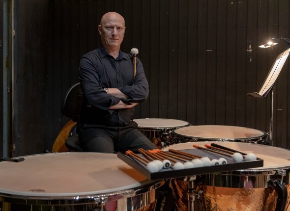 Борис Архангельский и его литавры. Фото: Илья Коротков, предоставлено Приморской сценой Мариинского театра