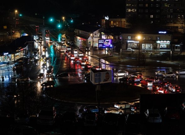 PrimaMedia, 27 ноября. Дневной дождь во Владивостоке сменился вечерним снегом с дождём. В разных районах города дежурит спецтехника, собрались пробки.
