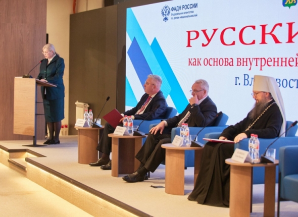 И.о. директора Департамента внутренней политики Приморского края Елена Белявцева добавила, что главная цель гуманитарной политики России — укрепление позиций страны в мире, сохранение исторической правды и противодействие русофобии.