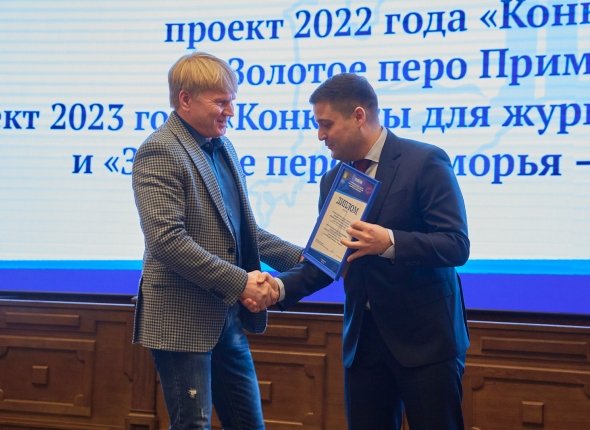 PrimaMedia, 22 декабря. Конкурс профессионального журналистского мастерства "Золотое перо" (16+) вошёл в топ-10 успешно реализованных проектов социально ориентированных некоммерческих организаций Приморского края. Председателя краевого отделения Союза журналистов России, сооснователя партнёрской сети PrimaMedia Виктора Суханова торжественно наградили в правительстве края в рамках форума "Живём в Приморье. Решаем вместе" (16+).