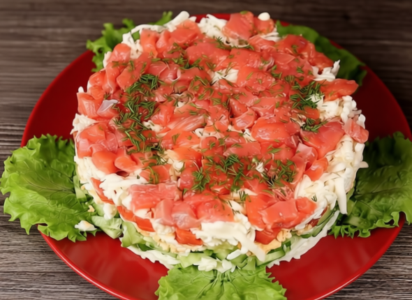 Главный секрет успеха этого салата в его контрастах. Кремовая мягкость плавленого сыра, благородная солоноватость красной рыбы, свежесть огурца и нейтральная нежность яйца создают гармонию, от которой сложно оторваться. Блюдо выглядит эффектно, но готовится быстро и просто.