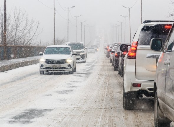 снег, снегопад, зима, дороги, машины, пробки, Рудневский мост