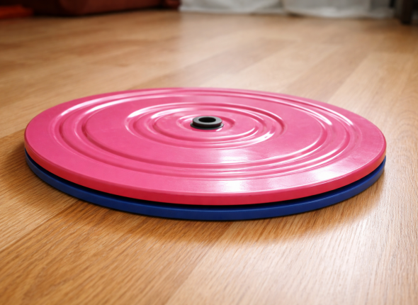 Конструкция у круга здоровья предельно простая: два диска, соединённые осью, внутри которой находятся шарики. Именно они позволяют платформе свободно вращаться в разные стороны. С виду это кажется чем-то почти игрушечным, но на деле такое движение даёт серьёзную нагрузку на корпус и мышцы-стабилизаторы.