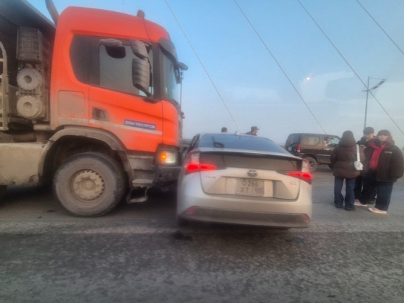 На Золотом мосту во Владивостоке столкнулись большегруз и Toyota Prius