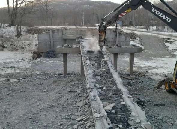 Аварийный мост восстанавливают в Лазовском округе. Фото: АО "Примавтодор"