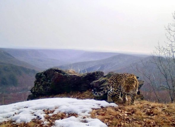 Дальневосточный леопард попал в фотоловушку на живописном склоне в Приморье. Фото: ФГБУ "Земля леопарда"