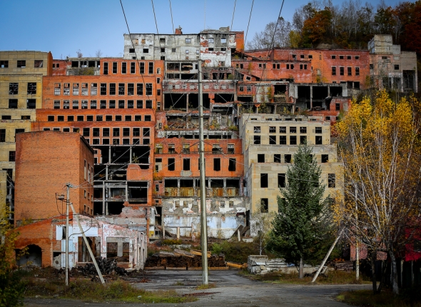 Природа нещадно разрушает многоэтажный комплекс, некогда являвшийся градообразующим предприятием в северной части региона.