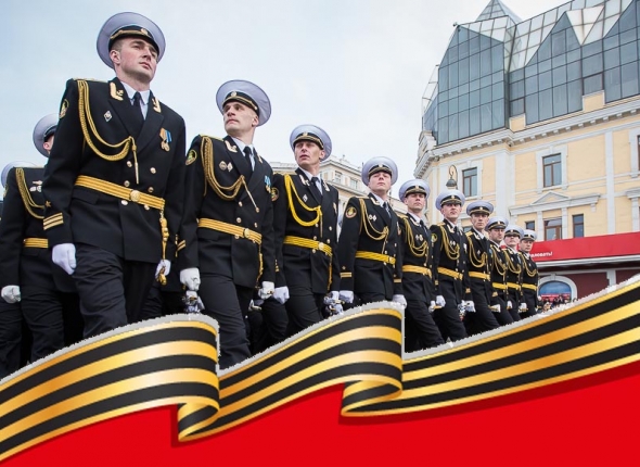 Итак, по улице шествуют подразделения Тихоокеанского флота. В летопись героической истории Великой Отечественной войны достойный вклад внесли воины-дальневосточники, моряки Тихоокеанского флота, жители Приморского края. Сотни тысяч Приморцев уходили на фронт в составе маршевых рот, батарей, батальонов и команд. Они защищали Москву, стояли на смерть у стен Ленинграда, бились в Кубанских степях и предгорьях Кавказа, на Курской дуге и в Заполярье. Освобождали Украину и Белоруссию, с боями брали Прагу, Кенигсберг и Варшаву, штурмовали Берлин. Когда слышишь эти факты и видишь перед собой сводную роту офицеров в парадном строю – испытываешь особую гордость. Мы – дальневосточники! Моряки, Фото с места события собственное. Фото: Автор фото: Александр Хитров, РИА PrimaMedia