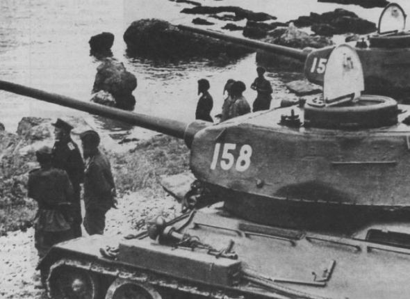 Танки Т-34-85 6-й гвардейской танковой армии на побережье Ляодунского залива, 22.08.1945