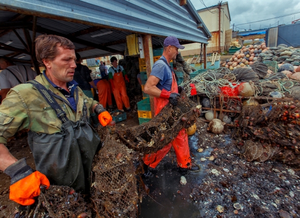 Разгрузка садков с гребешком. Фото: Фото: РИА PrimaMedia, Александр Хитров