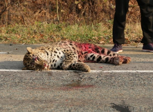 "Тело самца дальневосточного леопарда было обнаружено за пределами национального парка "Земля леопарда" вблизи Нежинского охотхозяйства на 35 километре автодороги Раздольное-Хасан. Водитель не покинул место происшествия и дождался оперативно прибывший патруль ДПС и сотрудников национального парка", – рассказали сотрудники нацпарка.