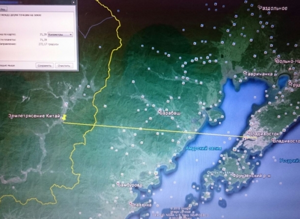 — Вчера вечером, 30 октября, на северо-востоке Китая произошло землетрясение магнитудой 4,3 в 70 км от Владивостока к западу и в 39 км к северо-западу от Безверхово, — сообщил Скайнет.
