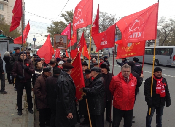 PrimaMedia, 7 ноября 2015. Шествие КПРФ в честь Дня Октябрьской революции 1917 года прошло во Владивостоке сегодня, 7 ноября. Коммунисты собрались у памятника В.И. Ленину, где состоится праздничный митинг, сообщает РИА PrimaMedia.