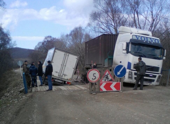 Мост на автомобильной дороге Лазо – Преображение в Приморье провалился под колесами грузовиков, едва не отрезав несколько населенных пунктов от "большой земли". Прибывшие на место дорожники оперативно восстановили движение по одной стороне, в настоящее время ремонт продолжается, сообщает РИА PrimaMedia.