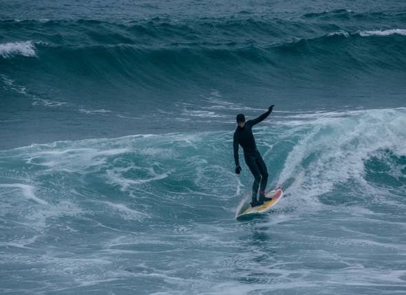 PrimaMedia, 3 декабря 2015. Сильный юго-восточный ветер, который принес во Владивосток 2 декабря обильные осадки в виде дождя со снегом, не испугал, а только порадовал местных любителей больших волн. Очередную вылазку на мыс Вятлина в экстремальную погоду совершили приморские серферы. За новыми подвигами наблюдали корреспонденты РИА PrimaMedia.