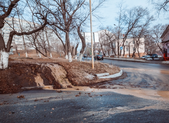 Провал асфальта на Луговой во Владивостоке произошел из—за прорыва трубы — "Примводоканал"