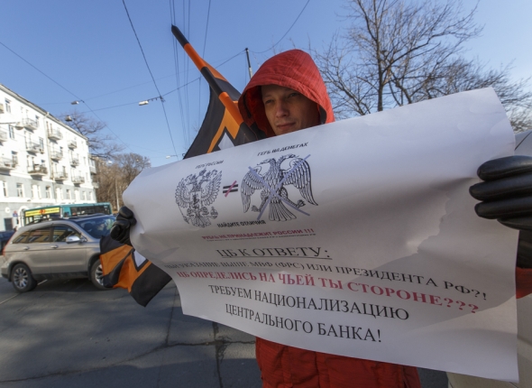 Одиночный пикет за национализацию Центробанка провел НОД во Владивостоке