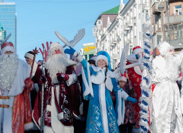 PrimaMedia, 19 декабря 2015. Около 1 тысячи человек в костюмах приняли участие в праздничном шествии Дедов Морозов во Владивостоке сегодня, 19 ноября. Морозы начали путь от Центра детского творчества и прошли по Океанскому проспекту до центральной площади, где прошел праздничный концерт. Подобная праздничная акция состоялась в приморской столице впервые, сообщает РИА PrimaMedia.