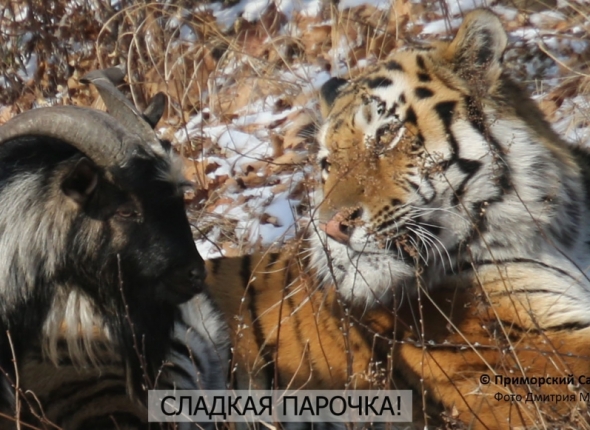 Напомним, путь от жертвы к лучшему другу начался 22 ноября. Именно в этот день в вольер к амурскому тигру Амуру, обитающему в Приморском сафари-парке, привели обычного домашнего козла, у которого на тот момент даже имени не было. Амура подкармливали живой пищей периодически, чтобы тот не потерял навыков охоты к тому времени, когда придет время выпустить его на волю. Однако хищник оказался настолько озадачен бесстрашным поведением козла, что не только не стал есть свой обед, но и подружился с парнокопытным. С этого дня зверей прозвали сладкой парочкой и начали следить за их жизнью. Сначала судьба друзей интересовала только приморцев, а теперь за ними наблюдают жители России и других стран мира.