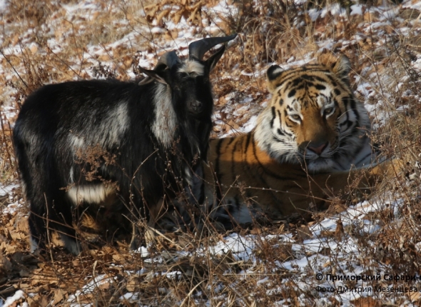 Тигр Амур и козел Тимур из Приморского сафари-парка отметили первый месяц совместной жизни