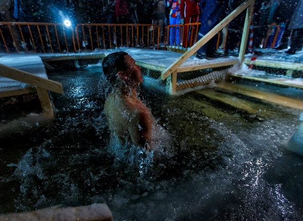 PrimaMedia, 19 января 2016. Празднование Крещения Господнего, одного из двенадцати главных праздников года, состоялось во Владивостоке в ночь с 18 на 19 января. После окончания праздничного богослужения жители и гости Владивостока пришли к купели на Спортивной гавани и трижды окунулись в освященную воду, сообщает РИА PrimaMedia.
