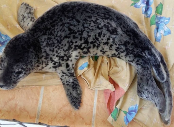 – Пара гуляла с собакой и обнаружила на берегу тюленя. Они позвонили в МЧС, ребята не первый год работают, знают как вести себя с животным. Спасатели поймали его, положили в коробку, позвонили нам, а мы приехали и забрали. Животное сильно обезвожено, худое, слизистые все пересушены. Сейчас мы боремся с обезвоживанием животного, – рассказали специалисты центра.