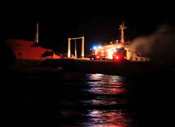 PrimaMedia, 27 марта 2016. Приморский танкер "Надежда" преподнес еще один сюрприз жителям сахалинского города Невельск – судно, находящееся на отмели с ноября 2015 года в 100 метрах от порта, ночью субботы, 26 марта, загорелось. Огонь вспыхнул в районе ходовой рубки полуразрушенного танкера, сообщает РИА PrimaMedia со ссылкой на пресс-службу ГУ МЧС России по Сахалинской области.
