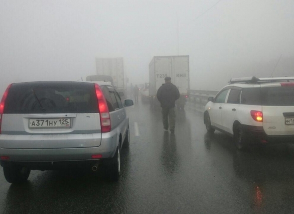 PrimaMedia, 22 апреля 2016. Сразу восемь ДТП с участием 15 автомобилей из-за почти нулевой видимости практически блокировали движение на трассе "Седанка-Патрокл" в сторону Патрокла. Как сообщили РИА PrimaMedia в группе пропаганды ГИБДД Владивостока, в настоящий момент сотрудники ДПС регулируют движение в этом районе, а очевидцы сообщают о новых и новых авариях.